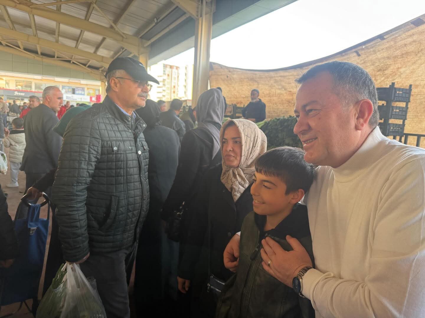 Alışveriş sırasında vatandaşlarla yakından ilgilenen ve taleplerini dinleyen Doğan, samimi tavırlarıyla dikkat çekti.