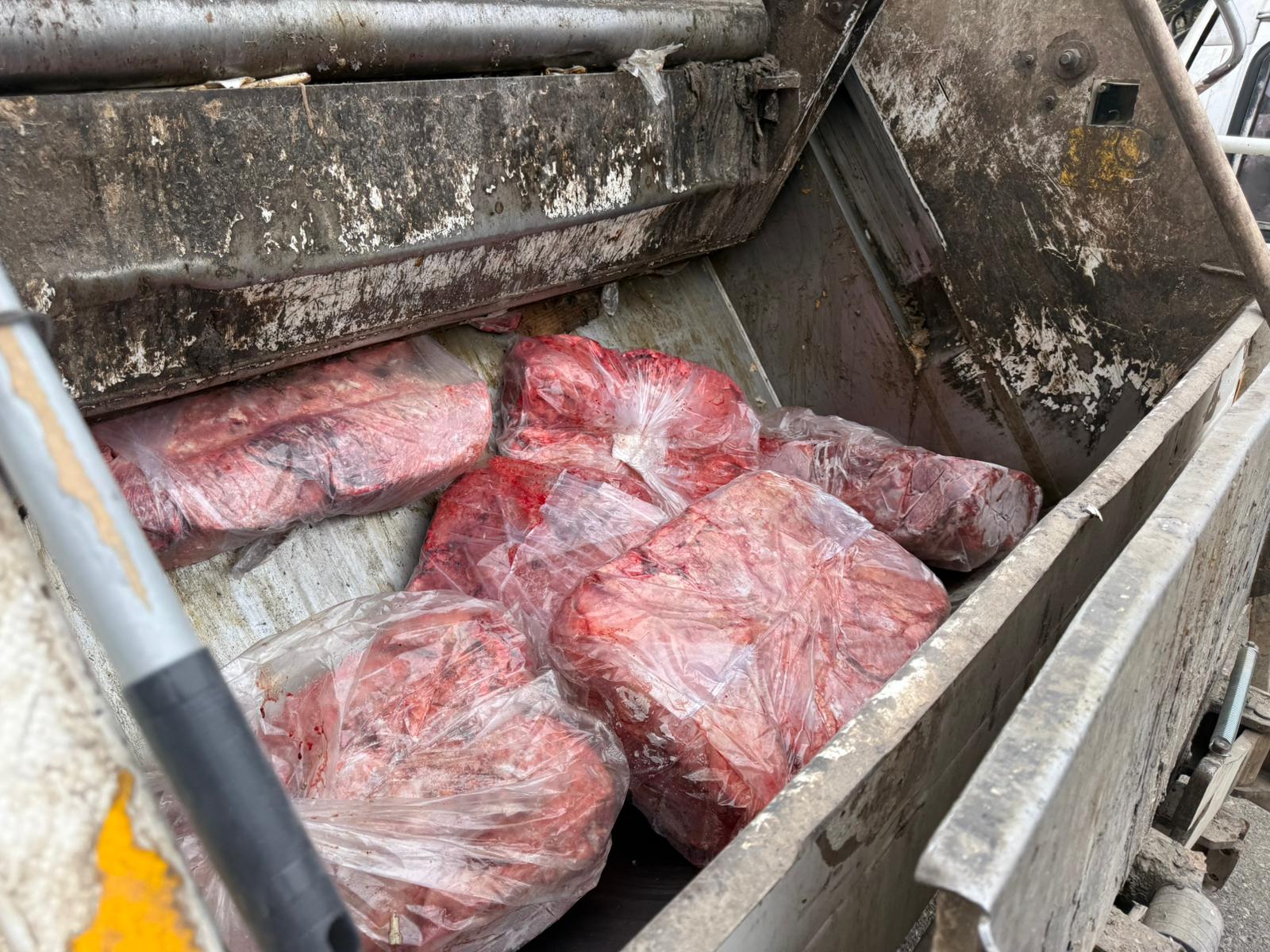 Nizip Belediyesi Zabıta Müdürlüğü ve Temizlik İşleri ekiplerinin koordinasyonuyla çöp döküm sahasına götürülen 1 ton 600 kilogram et, usulüne uygun şekilde imha edildi.
