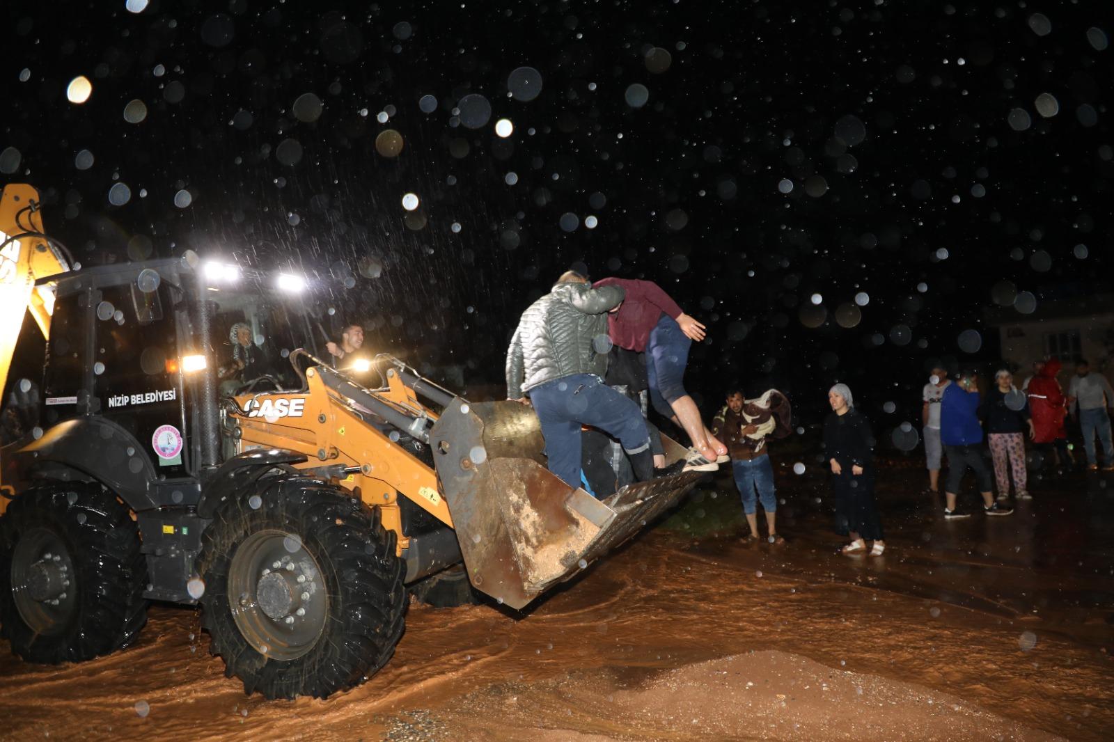 Nizip Belediye Başkanı Ali Doğan, özellikle Gevence Mahallesi’nde sel sularının yükselmesi sonucu evlerinde mahsur kalan vatandaşların, ekiplerin özverili müdahalesiyle sağ salim kurtarıldığını açıkladı.