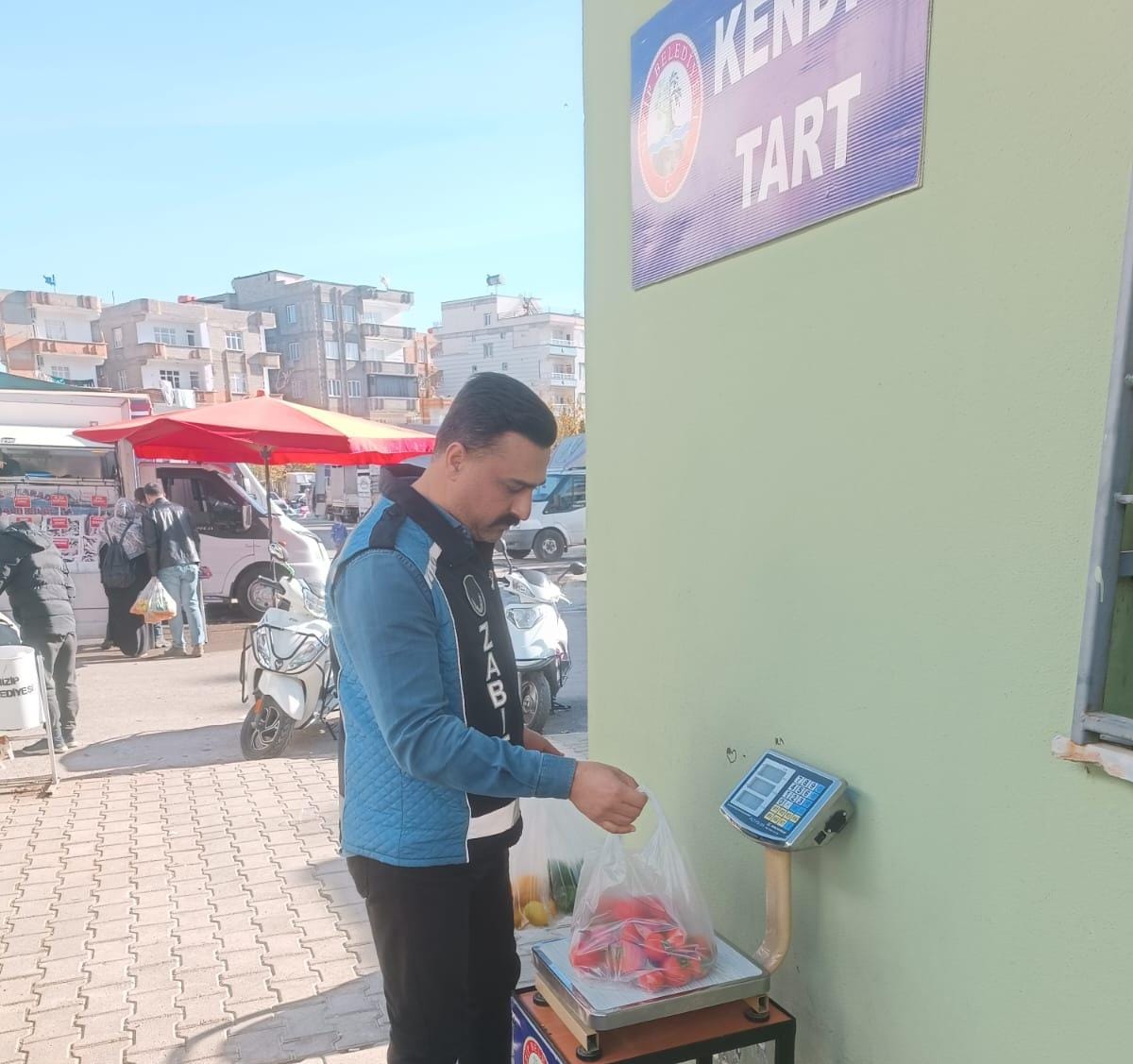 Ayrıca pazara alışverişe gelen vatandaşlara, Zabıta Karakolu önünde bulunan belediyeye ait “KENDİN TART” terazisini kullanabilecekleri yönünde bilgilendirme yapıldı.
